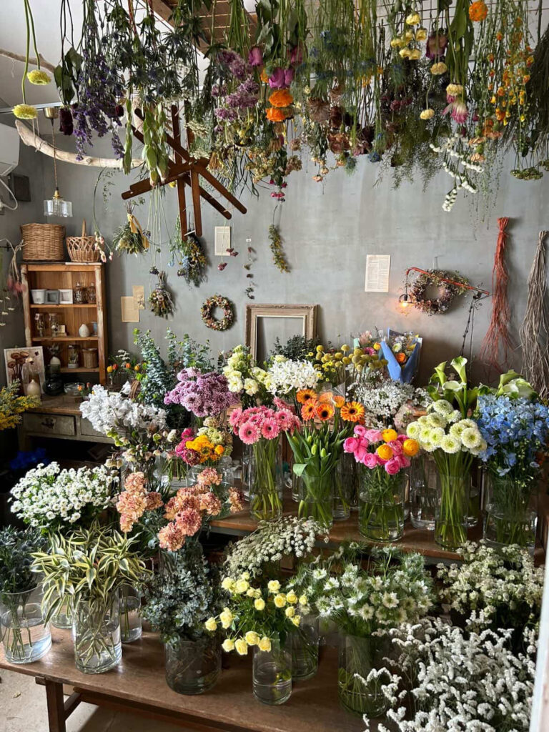 福島市の。『贈るひとも貰うひとの嬉しい』をコンセプトにしたお花屋さん。アンティークの家具で整えられた空間には色とりどりの生花とドライフラワーが溢れていて、目移りしちゃうほど!お気に入りの花をおうちに持って帰ろう♡